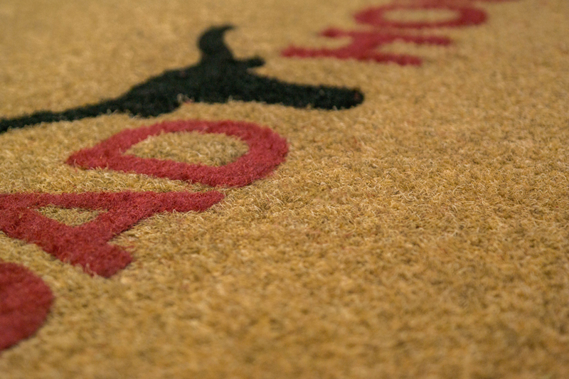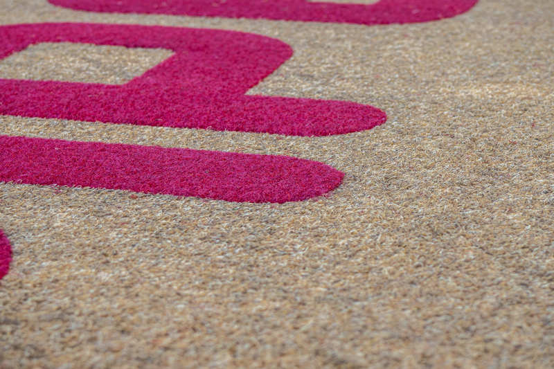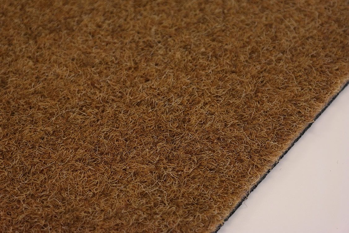 This kind of doormat is manufactured using a needle-punch system. Its pile is composed of 100% polypropylene fibre and its backing is composed of recycled rubber, which provides a product similar in appearance to classic coconut mats. However, the synthetic coir mat has the added advantage of being much more resistant to water and dampness, which would typically be the cause of deterioration to the natural fibres in a classic coconut mat